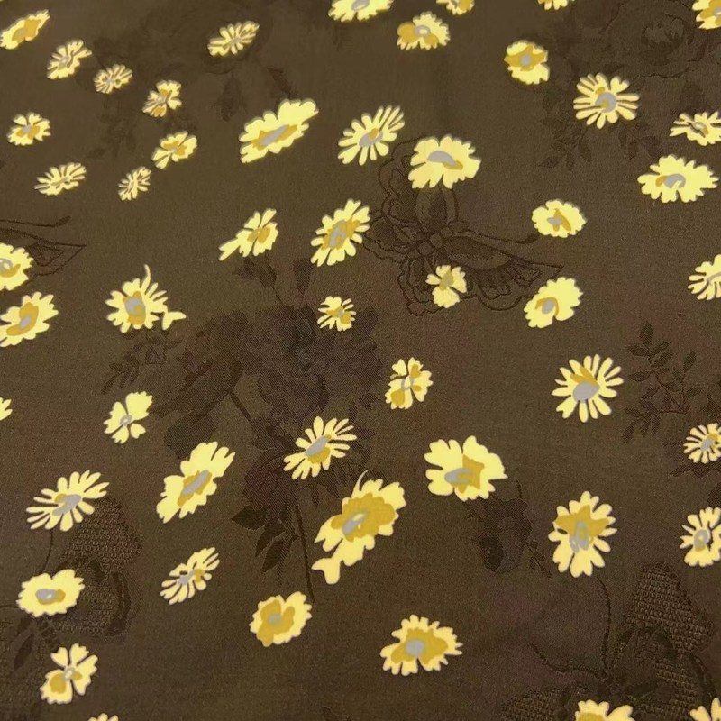 Il tessuto che ha descritto è di alta qualità, satinato jacquard con un disegno floreale a marchio d'acqua, con una composizione del 68% di viscosa e del 32% di rayon.Ha un peso di 110 GSM e una larghezza di 54/55 polliciIl tessuto ha una lussuosa texture setacciata, che ricorda la seta satinata, e offre una sensazione di freschezza e comfort quando indossato.